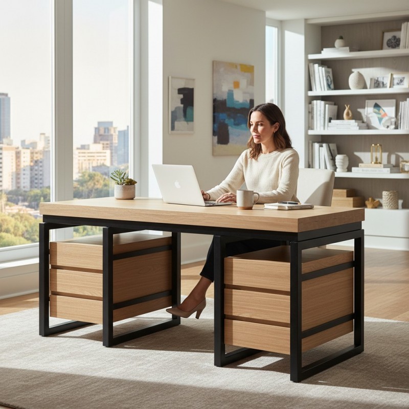 Birou SQR 06 din lemn masiv, conceput pentru a oferi durabilitate, eleganță..