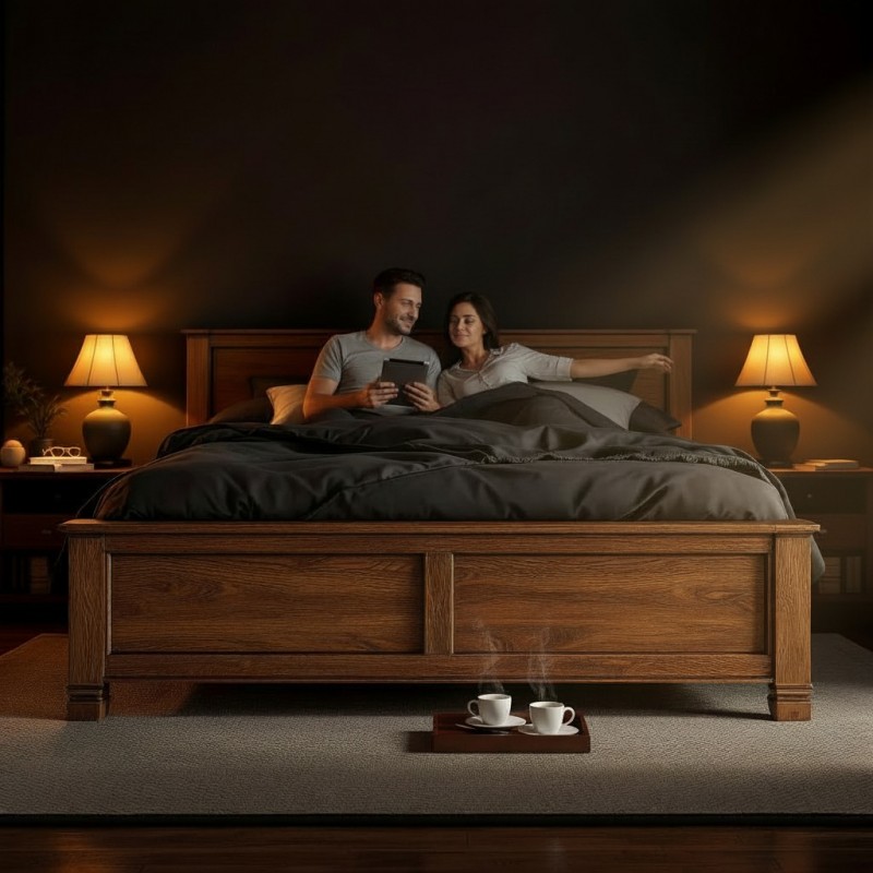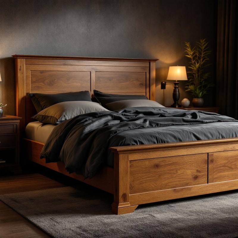 Acest pat din lemn masiv este conceput pentru cei care apreciază calitatea, rezistența și designul atemporal. Realizat din lemn natural, finisat atent pentru a evidenția textura și fibra unică a materialului, patul aduce o notă caldă și primitoare în orice dormitor.